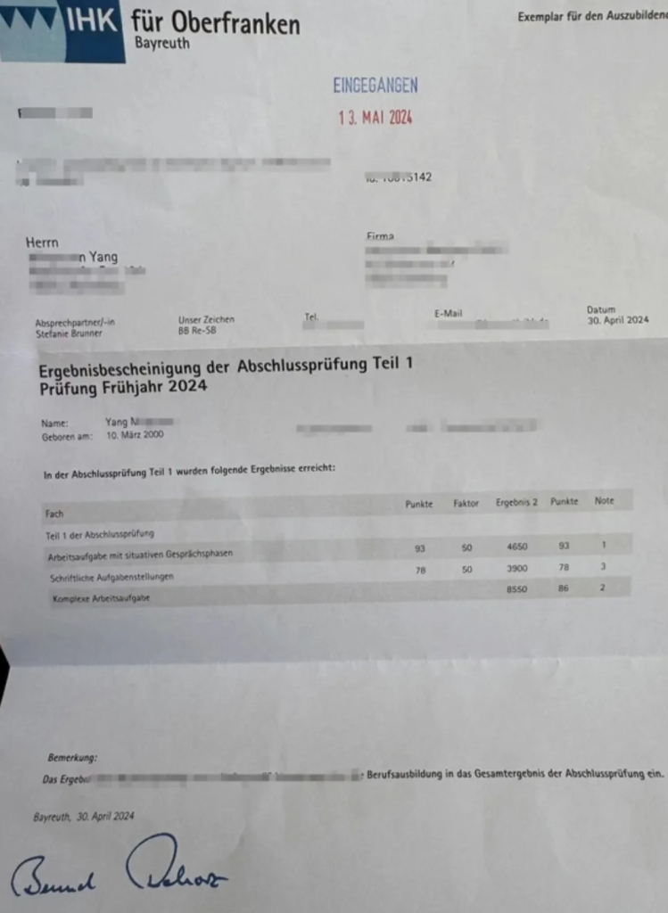 In Deutschland bin ich der Meinung, dass das Lernen professionelles Wissen der Kern ist, aber das Lernen Deutsch ist gleichermaßen wichtig. Darüber hinaus müssen unsere Schulkurse auch religiöse Kurse, Ethikkurse, Gesetze und Vorschriften lernen. Das Wahlrecht, das Arbeitsrecht usw. sind entscheidend, um die eigenen Rechte und Interessen zu schützen.