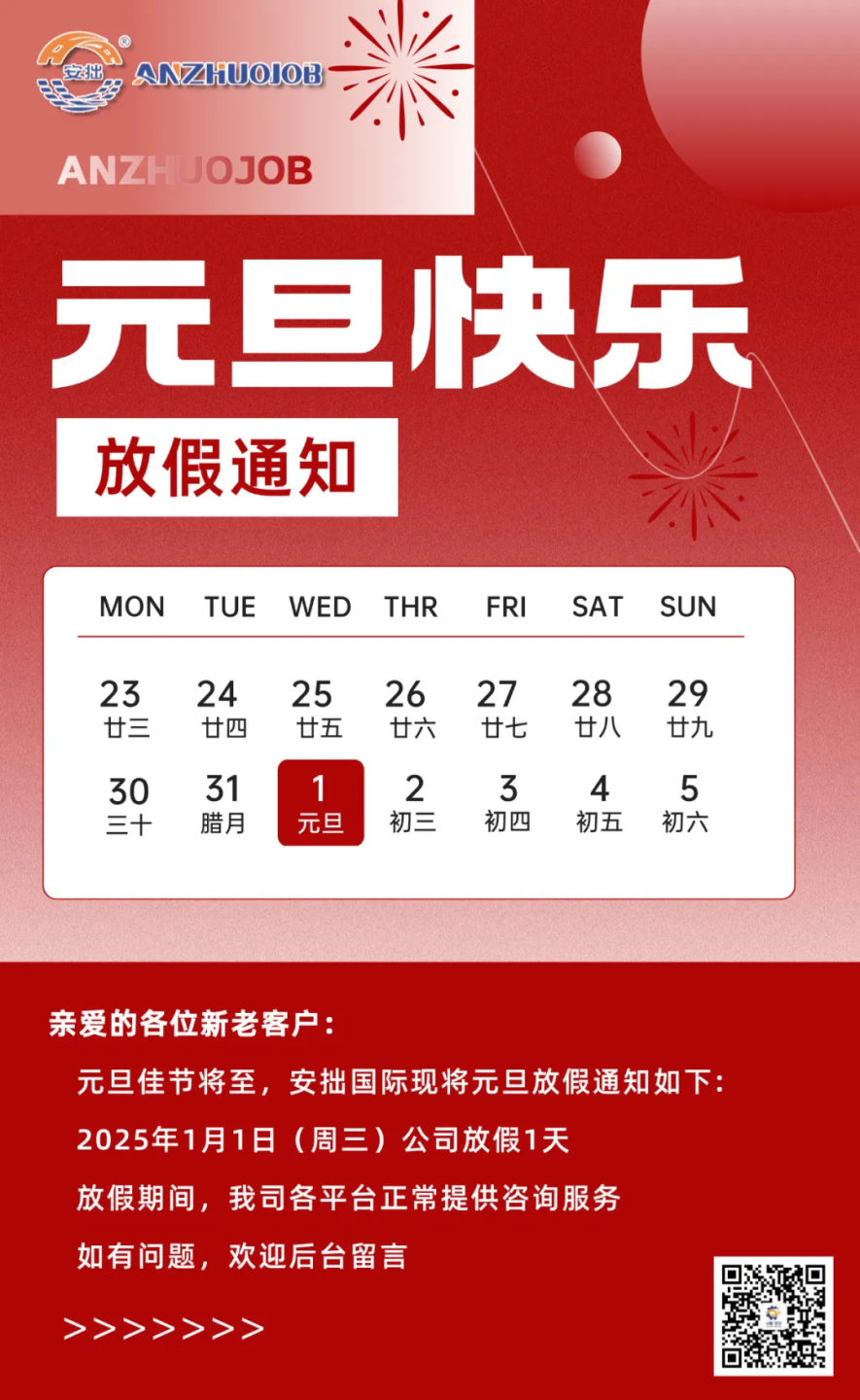 - 辞旧迎新 福气连连|安拙国际2025元旦放假通知
