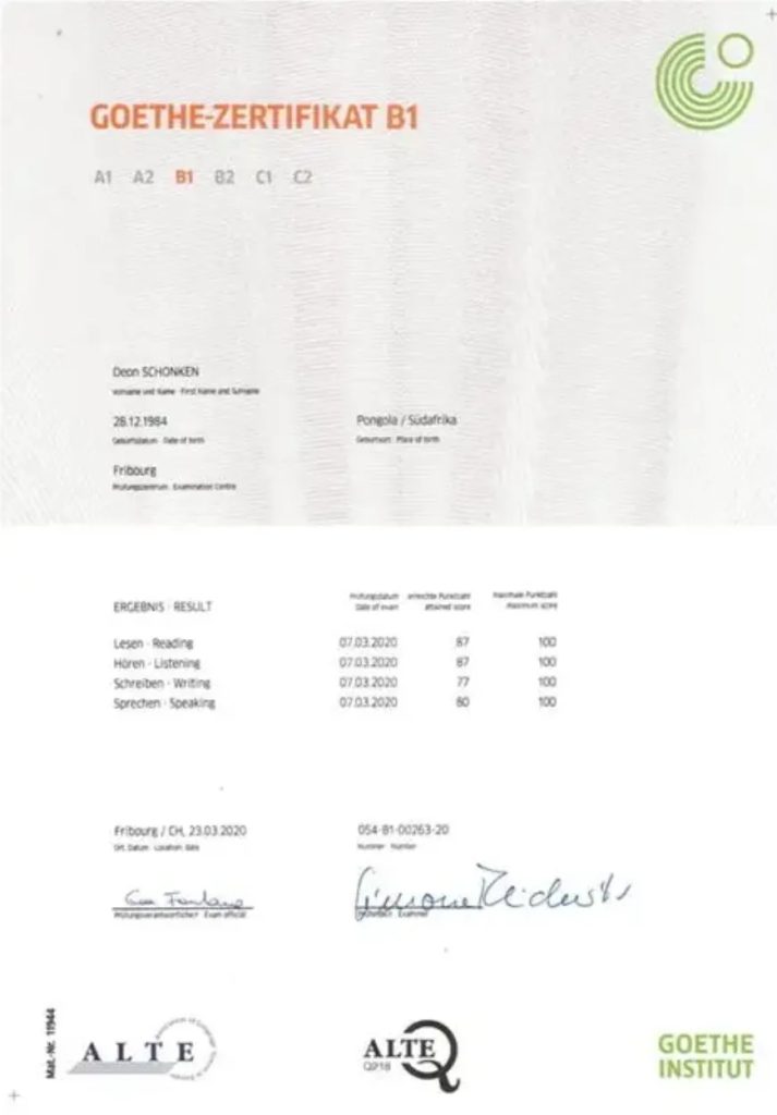 虽《居留法》未写明德语等级,但使馆签证官的审批逻辑很直接:沟通困难 = 培训失败。因此,申请德国双元制签证时,通常要求提供德语 B1 证书(如 telc B1、Goethe B1),这是证明 “能完成培训” 的关键材料。