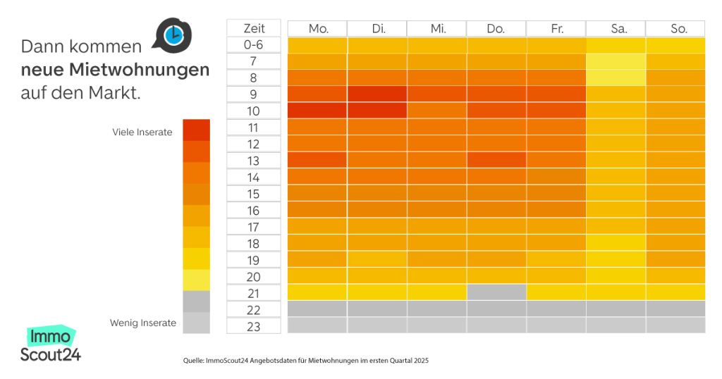 在德国租房市场竞争较为激烈的背景下,“选对找房时间” 往往是成功找到合适房源的关键因素之一。权威房产数据分析覆盖超 60 万条租房房源信息,得出了关于 “新房源上线高峰时段” 的核心结论 —— 掌握这些时段,能有效提升租房效率,减少重复浏览无效房源的时间。本文将基于该分析,详细拆解德国租房的最佳搜索时段及实操建议。