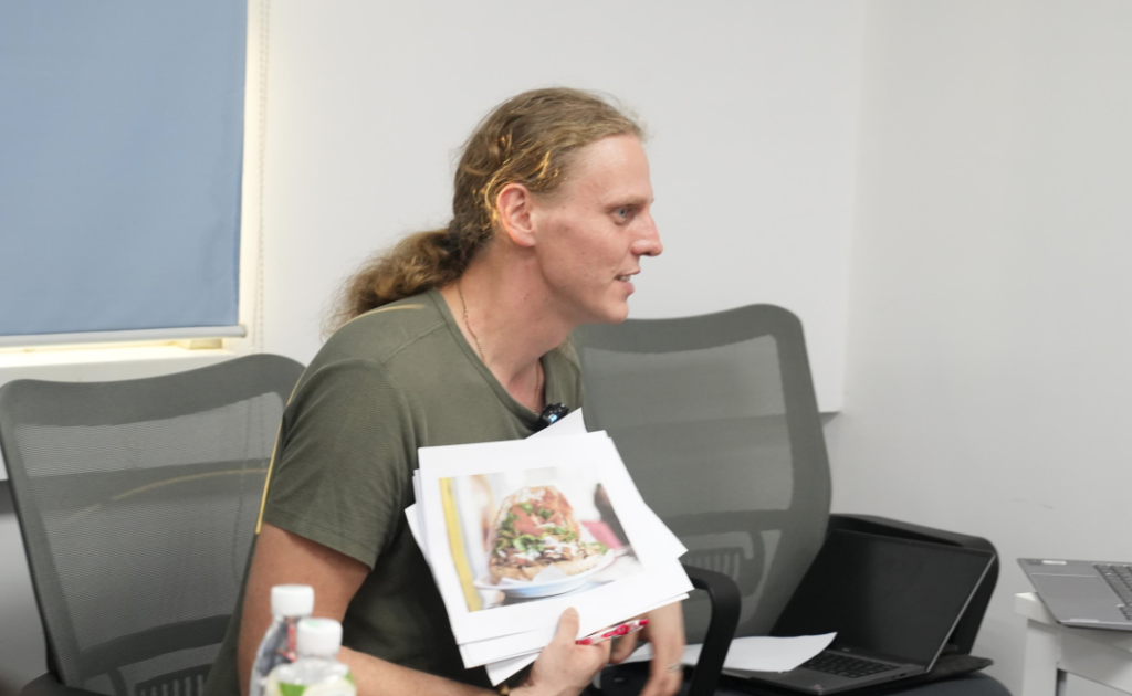 在Mitchell老师的带领下,同学们还就德国饮食文化进行了深入的讨论与交流。每位同学都热情推荐了一道中国美食,并详细阐述了食物的材料与烹制过程。