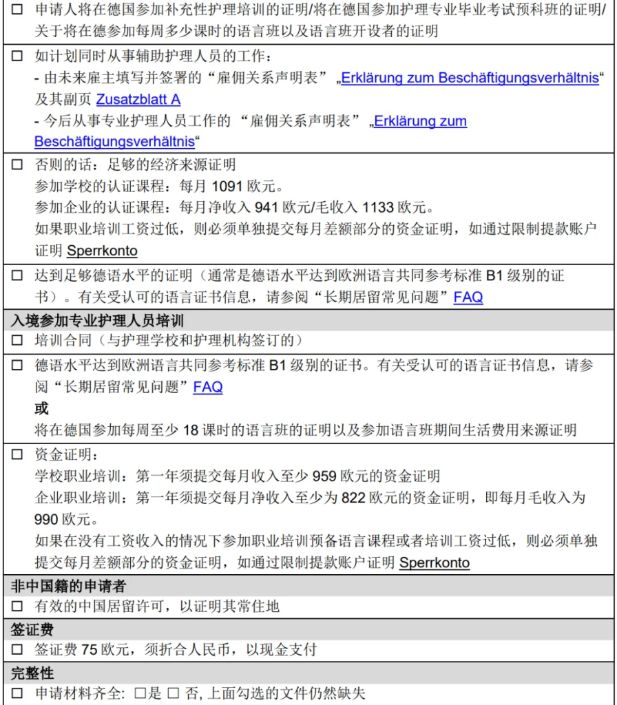 1.认可的学位:在中国获得的护理学位必须在德国得到认可。主管机构将审查您的职业资格是否 与德国资格等同。如不等同,您可以参加知识测试或适应性课程,以证明具有同等水平的知识。职业认可申请需提交给就业所在联邦州的主管当局。(相关机构信息请参见:www.anerkennung-in-deutschland.de )