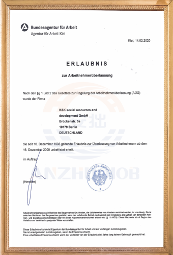 获得德国劳工部官方授权,确保提供的岗位服务符合德国劳动法要求